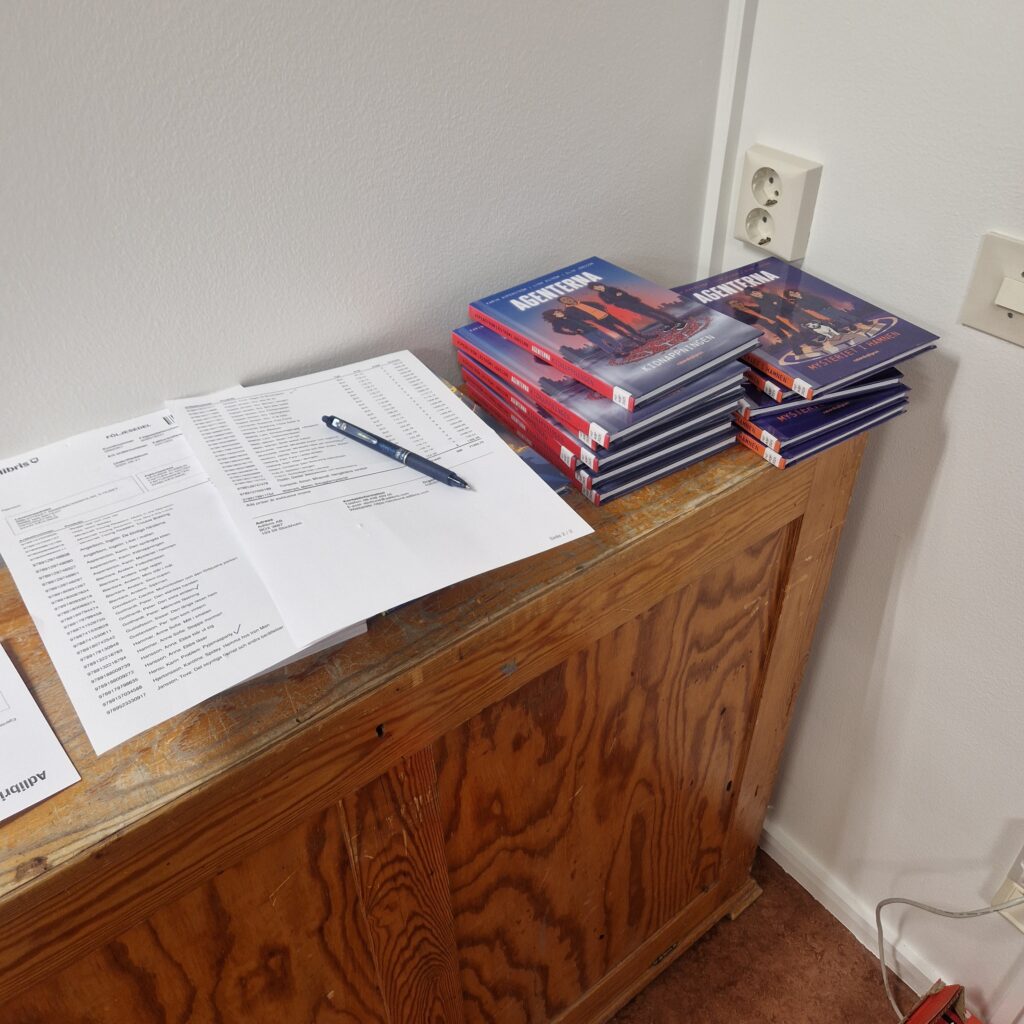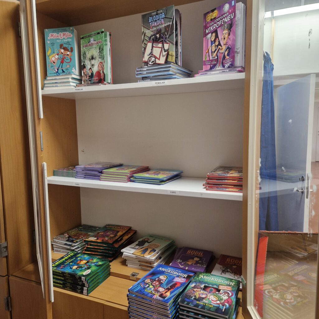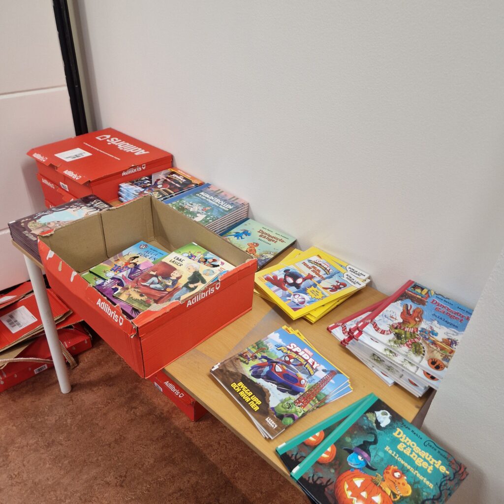 För att hinna beställa och vara så effektiva som möjligt så delade vi upp arbetet mellan oss sju bibliotekarier, så på andra skolor väntar Hcg och ungdomsböcker på att skickas ut!