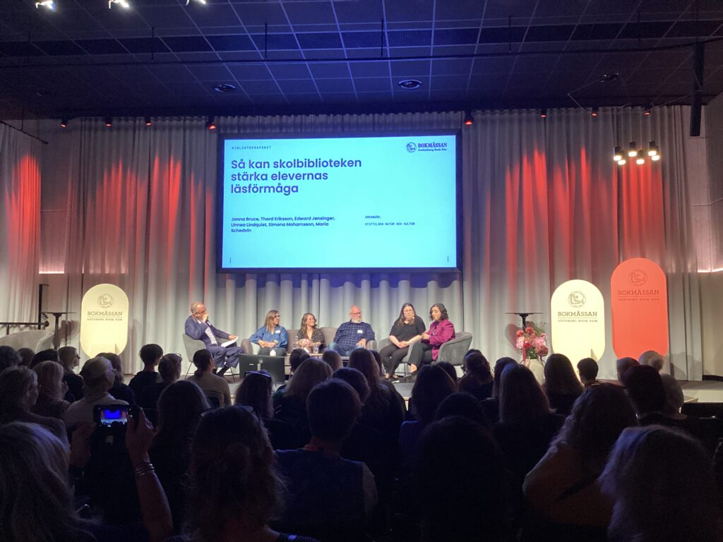 Nästa skolbiblioteksrelaterade seminarium hette ”Så kan skolbiblioteken stärka elevers läsförmåga” och där lyssnade vi till Maria Schedvin, Edward Jensinger, Jonna Bruce och Linnea Lindqvists kloka ord. En sak som togs upp är bristen på utbildade bibliotekarier, vilket en del menar är en myt. Här lyftes det att det finns en brist, alla kan och vill inte arbeta på skolbibliotek, men en bidragande orsak som också lyftes är att tjänsterna inte alltid är så attraktiva. Här samtalades också om vad som kännetecknar ett välfungerande skolbibliotek. Förutom strukturella förutsättningar att vara en del av skolans arbete så är det att skolbibliotekarien, som såklart är utbildad, har ordentliga förutsättningar i tid, ekonomi och ett elevantal som möjliggör en bra verksamhet. En viktig sak som sades här är att det är lärarens uppgift att lära eleverna läsa, och bibliotekariens uppgift att få dem vidare. I slutet på samtalet bjöds utbildningsministern, Simona Mohamsson in och hon fick några förhoppningar som medskick i arbetet framåt.