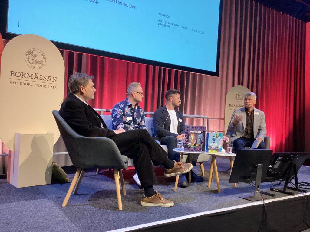 Jag började med två samtal kring skolbibliotek. Det första handlade om hur skolbiblioteken ska bemannas nu när den nya lagen trätt i kraft. Här samtalade Malena Martininger Hummel från Skolverket med Anna Svalander, lokalpolitiker och Anna Troberg, ordförande i DIK kring utmaningar, förväntningar och vinster med lagkravet. En förväntan är att skolorna ska bli mer likvärdiga, och att det är bra med allt fokus som nu riktas på skolbiblioteken. Svårigheterna kan vara att det är svårt att få utbildad personal, eller att skolorna är för små för att klara det ekonomiskt, men som Malena så klokt sa, ”Vi får inte sluta försöka bara för att det är svårt”. Nyfikenheten är också stor på hur inspektionerna från Skolinspektionen kommer att se ut, det är inte riktigt klart ännu. En tanke som kom fram var att det kunde förenkla för huvudmännen om statsbidraget som går till att stärka bemanningen i skolbiblioteken var öronmärkt. Modererade gjorde Jenny Nilsson från Nationella Skolbiblioteksgruppen.