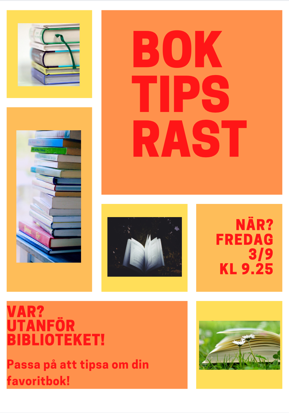 En fredag i månaden är det Boktipsrast på Rinnebäcksskolan. På fredagar har alla årskurser rast samtidigt, vilket är smidigt om en vill nå många.