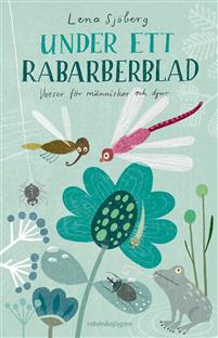 Den andra diktsamlingen har Lena Sjöberg som skapare av både ord och bild. Den heter Under ett rabarberblad. En helt annan typ av verser som rimmar och med bilder i matta färger som breder ut sig över hela sidorna. Det är en behaglig färgskala och illustrationerna vaggar in en i en sorts lugn där de ståtar på det matta papperet. Lite bedrägligt för temat i dikterna kan vara nog så dramatiska om förgänglighet och död eller vara scener ur naturen som målas upp. Lena Sjöberg är skicklig på rim och rytm och det är fin samling.