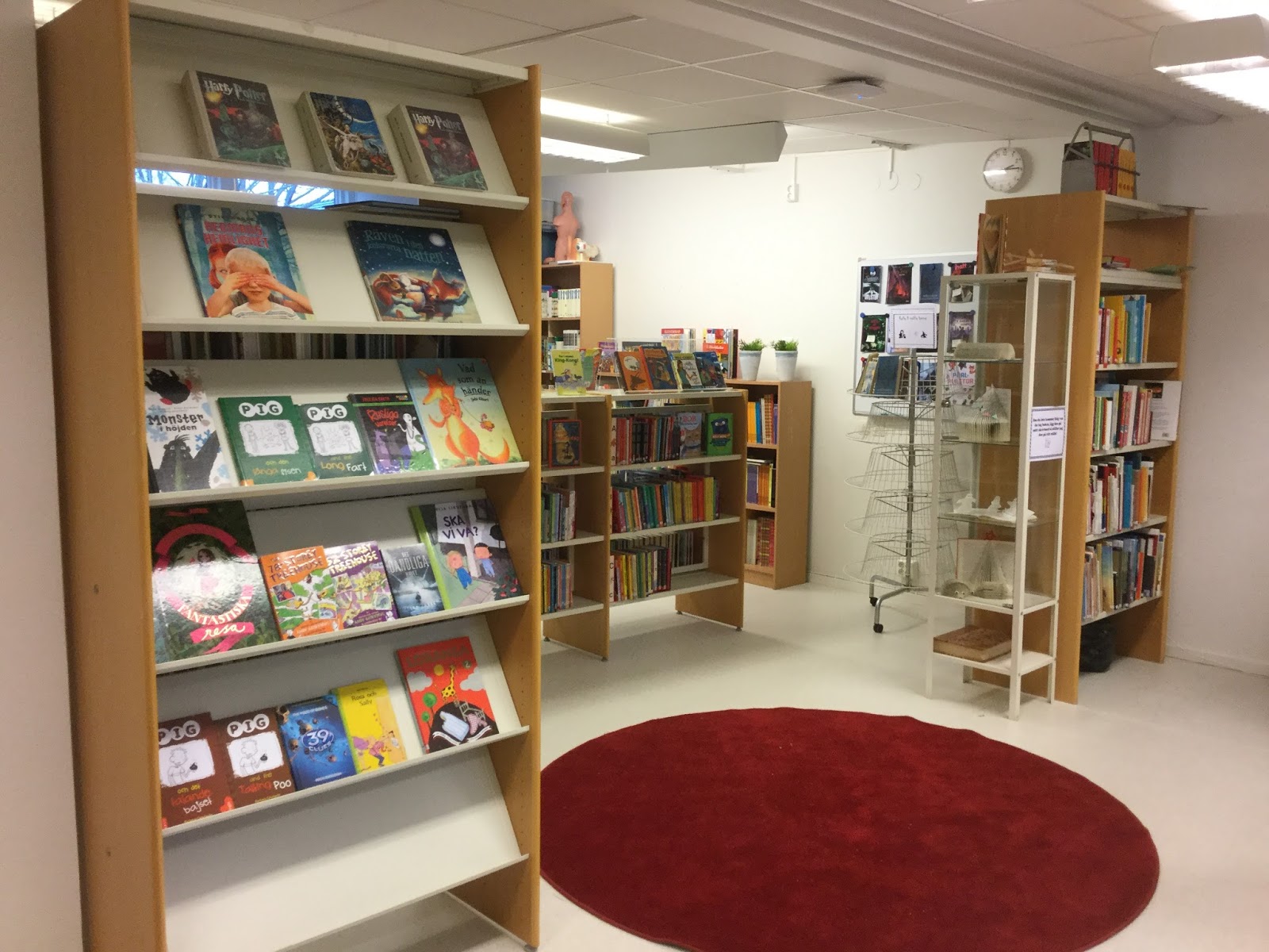 Biblioteket flyttades då till gamla teknikkulan, och det blir så himla bra! Tanken är att detta är sista flytten, så möbler ska beställas så fort offerttiden går ut nästa fredag. Så spännande och roligt att få inreda med helt nya möbler! Tillsvidare så har vi satt upp de gamla, och det blev inte så tokigt det heller 🙂