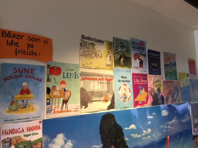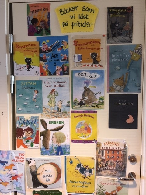 På Söderparks fritids läser personalen många böcker högt för barnen. Härligt! Så fort de läst ut en bok så skriver pedagogerna ut en bild på bokens framsida och sätter upp i kapprummet. På så sätt så påminns barnen om alla böcker som de läst och föräldrar som hämtar sina barn kan följa med i vilka böcker som läses.