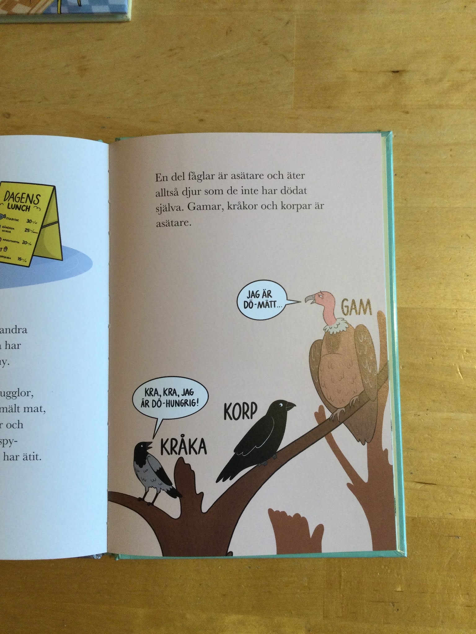 En ny härlig, lättläst och rolig faktabok av Anna Hansson i serien ”Intresseklubben”. Efter myror, råttor, fiskar och ormar har turen kommit till fåglar. Jag älskar humorn i pratbubblorna, och mammafågelns ”Oops” när hon puttar ner ungen från grenen 🙂 Titeln är ”Sångfåglarna och andra kraxare” och Maria Andersson Keusseyan står för de fina illustrationerna. Böckerna i serien passar jättebra för högläsning, det finns mycket att prata om med eleverna i varje bild.