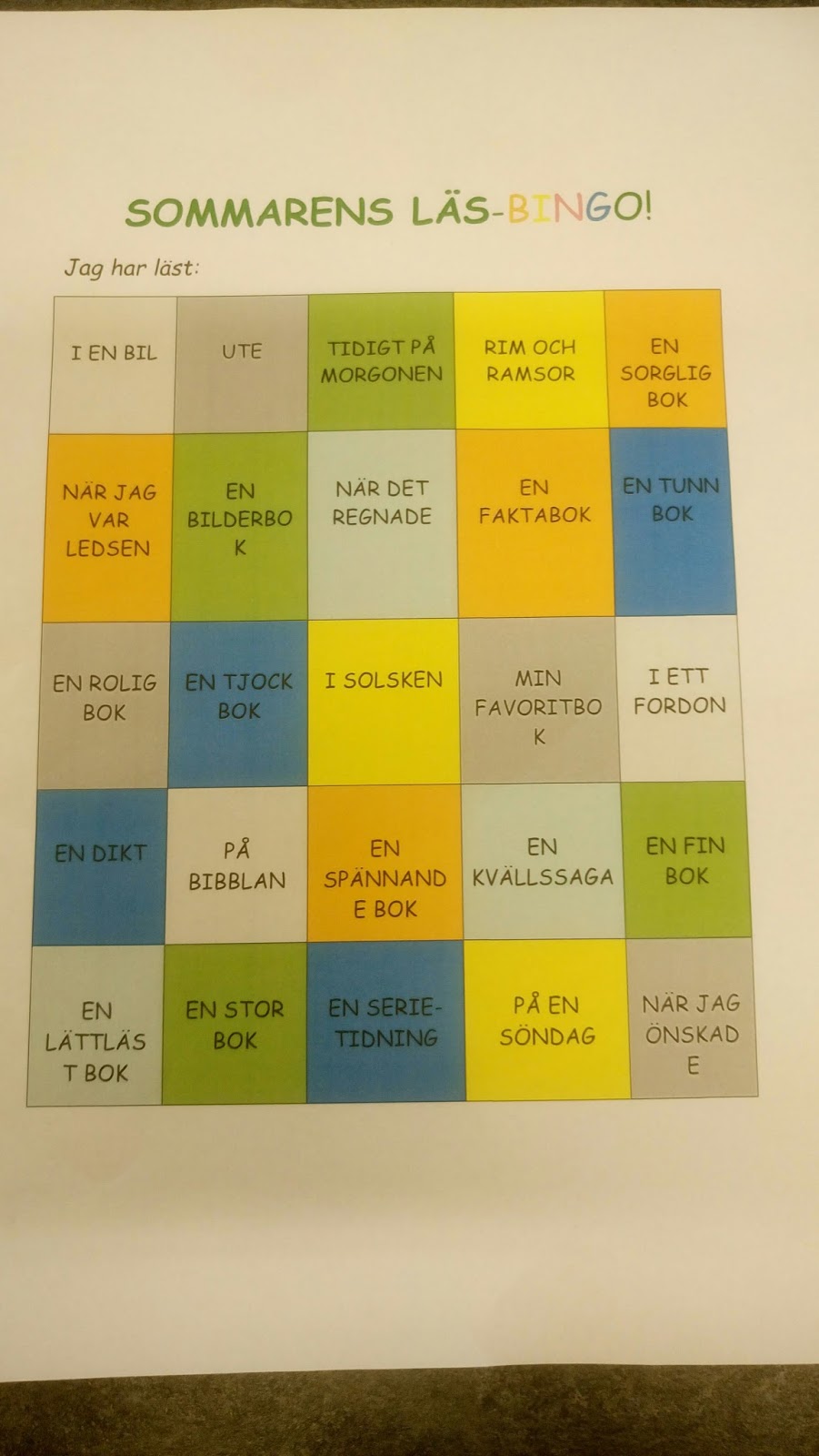 En annan sak en kan göra på sommaren, är att utmana sin familj eller sina vänner på Läsbingo! Klicka här för att skriva ut din bingobricka!
