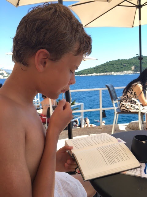 Sonen som är 13 år är djupt inne i världen kring Spejarens lärling. Den åttonde boken i serien skriven av John Flanagan lästes ut under semesterresan och den nionde delen påbörjades. Jag har inte själv läst böckerna men de är tydligen SÅÅ SPÄNNANDE!