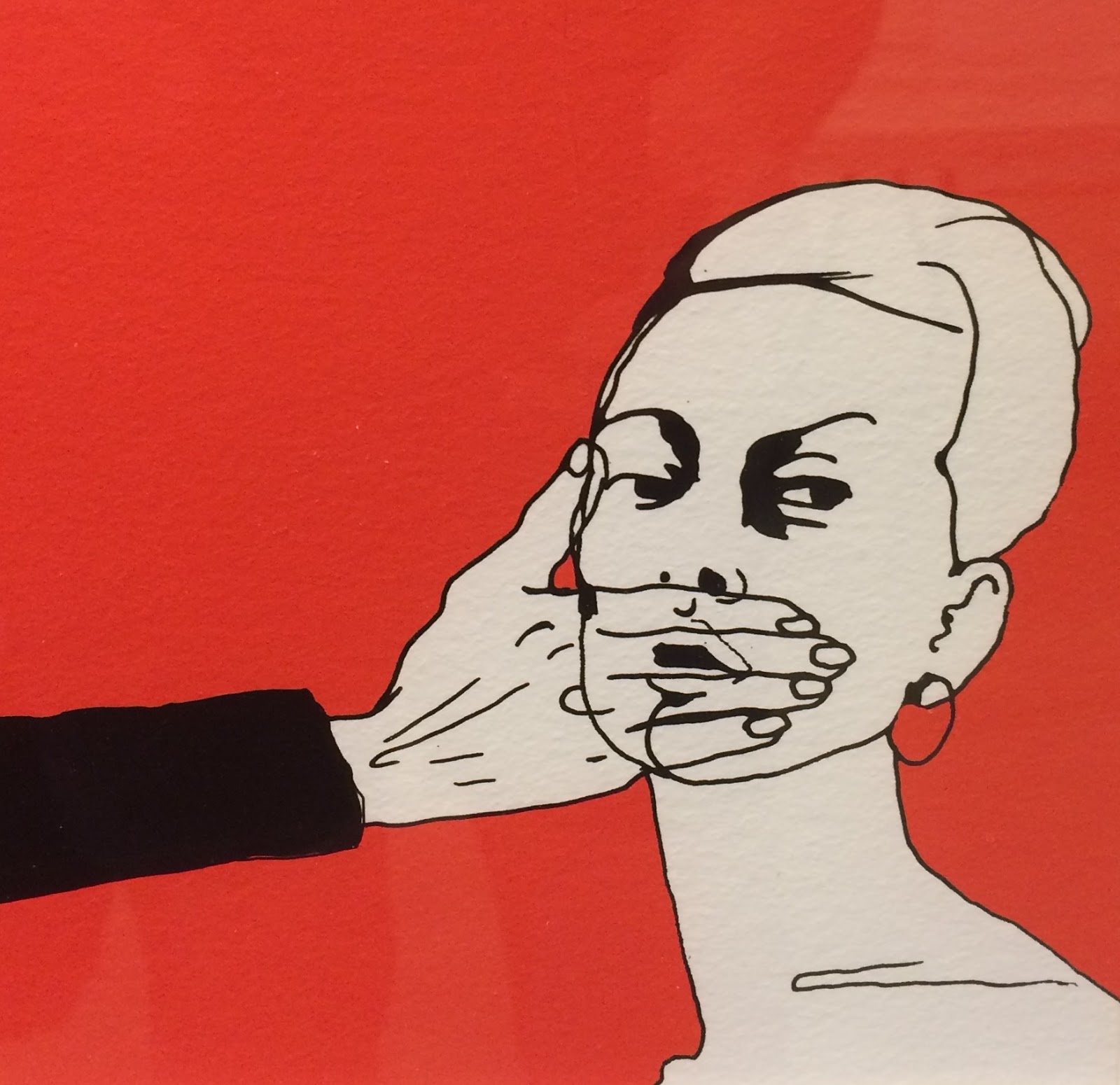 Länge blev jag stående framför några teckningar som var så mycket starkare i färgvalet än vad som är brukligt för Stina Wirsén. Budskapet i teckningarna är också djupt berörande och har varit publicerade i DN i samband med artiklar om #Metoo.