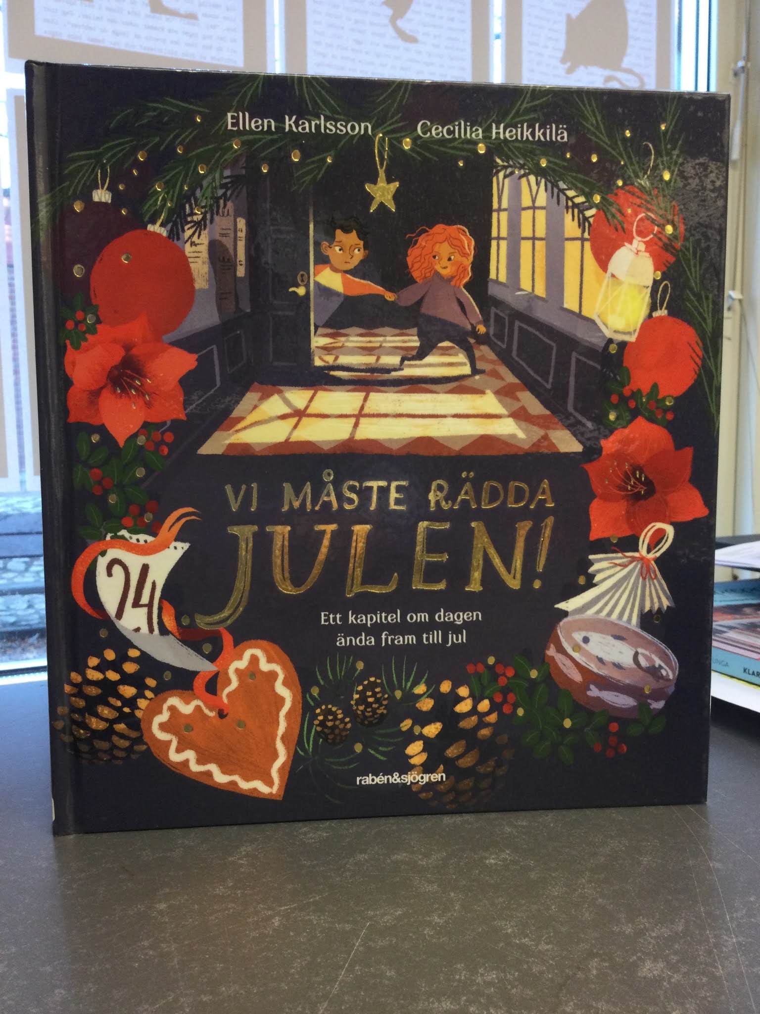 Årets adventsbok från Rabén och Sjögren heter ”Vi måste rädda julen” och är skriven av Ellen Karlsson med illustrationer av Cecilia Heikkilä.