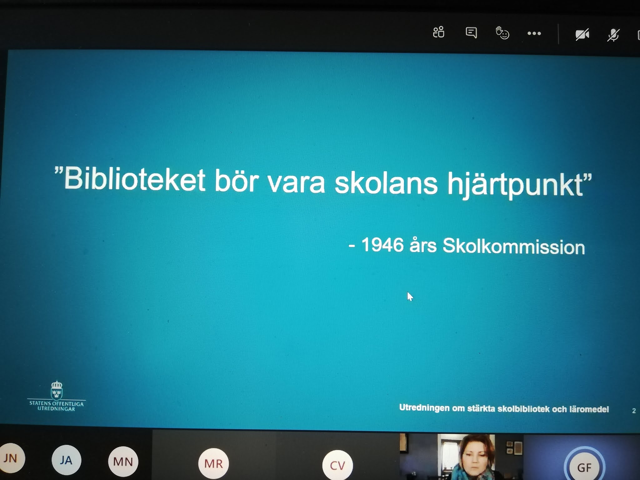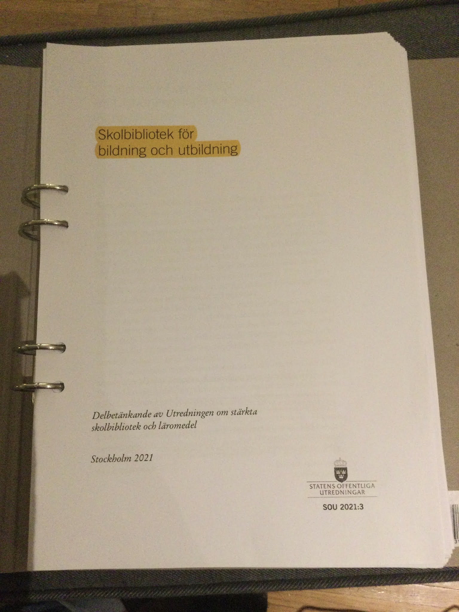Idag har expertnätverket för skolbibliotek haft en digital nätverksträff, arrangerat av Svensk biblioteksförening, som enbart handlade om utredningen ”Skolbibliotek för bildning och utbildning” , SOU 2021:3. Maria och jag deltog och så många kloka tankar som delades under dagen! Gustav Fridolin fick svara på frågor och funderingar om utredningen och på eftermiddagen så diskuterades bra och mindre bra saker som står i den samt vad som eventuellt saknas och sist men inte minst vad vill professionen ta upp i remisshanteringen. Det är så häftigt att få vara med i denna processen!