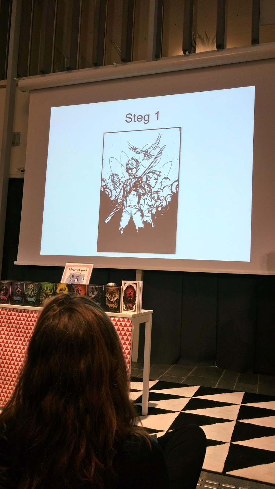 Jag lyssnade också på  författaren Ingela Korsell och tecknaren Henrik Johnsson som tillsammans med Åsa Larsson har skrivit den omåttligt populära urban fantasyserien Pax, om bröderna Alrik och Viggo och deras äventyr i Mariefred. Snart, snart kommer den tionde och avslutande delen ”Draugen” och Ingela lovar att boken inte avslutas med en cliffhanger som de andra.