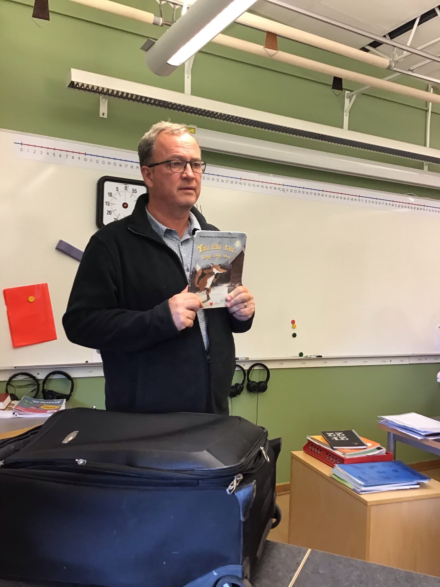 Han träffade år 3-6 på Dösjebroskolan och lyckades verkligen med att få med sig eleverna. Förutom samtal och presentation av sina böcker, fick eleverna också veta varför det är så viktigt att läsa.